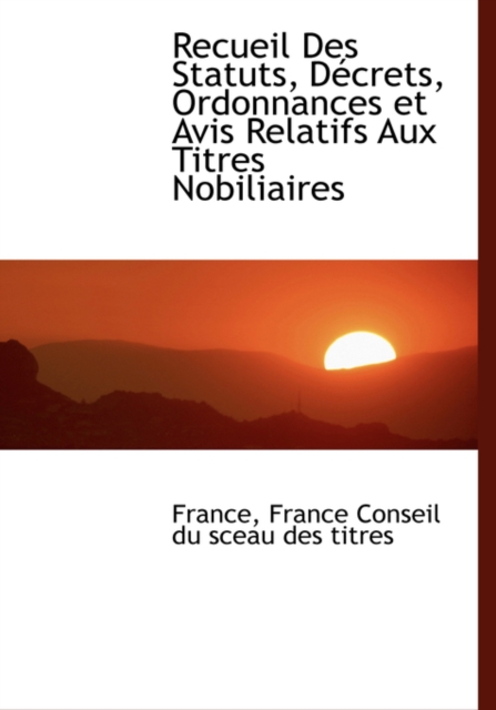 ISBN: 9783382711177TITLE: Recueil des statuts, decrets, ordonnances et avis relatifs aux titres nobi…