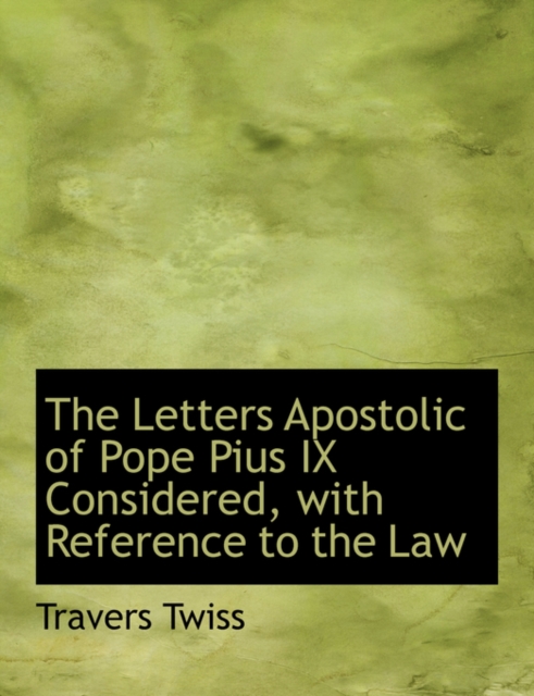 TITLE: The Letters Apostolic of Pope Pius IX Considered, with Reference to the Law
