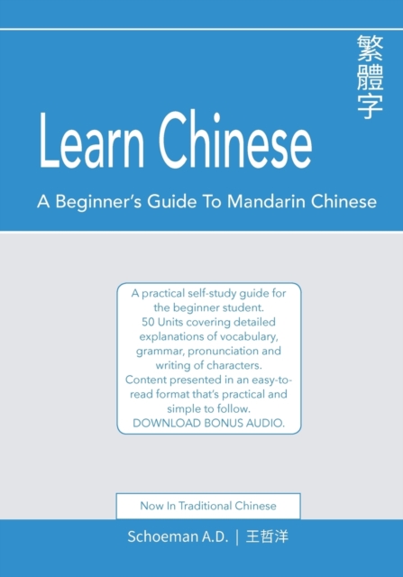 TITLE: Learn Chinese : A Beginner's Guide to Mandarin Chinese (Traditional Chinese): A practical self-study guide for the beginner student.