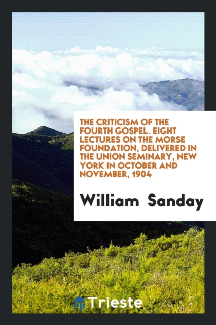 TITLE: The Criticism of the Fourth Gospel. Eight Lectures on the Morse Foundation, Delivered in the Union Seminary, New York in October and November, 1904