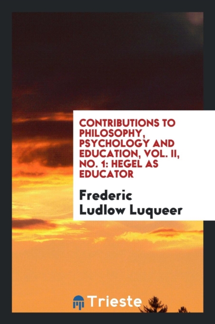 TITLE: Contributions to Philosophy, Psychology and Education, Vol. II, No. 1 : Hegel as Educator