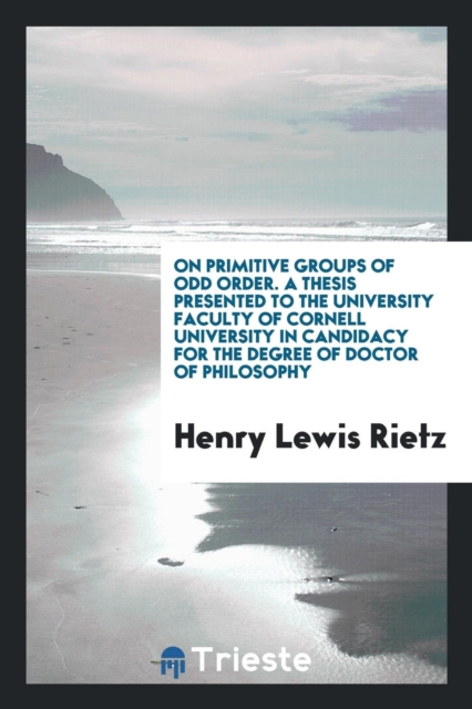 TITLE: On Primitive Groups of Odd Order. a Thesis Presented to the University Faculty of Cornell University in Candidacy for the Degree of Doctor of Philosophy