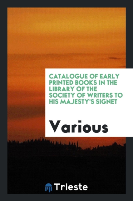 TITLE: Catalogue of Early Printed Books in the Library of the Society of Writers to His Majesty's Signet