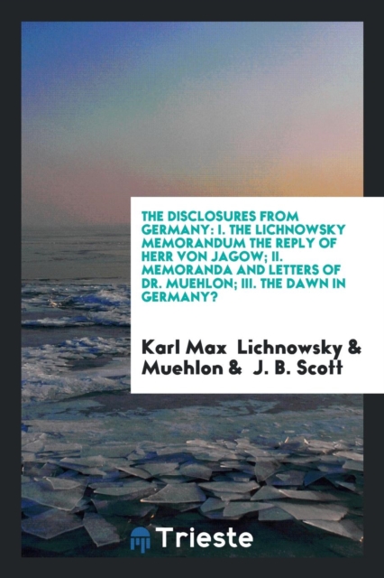 TITLE: The Disclosures from Germany : I. the Lichnowsky Memorandum the Reply of Herr Von Jagow; II. Memoranda and Letters of Dr. Muehlon; III. the Dawn in Germany?