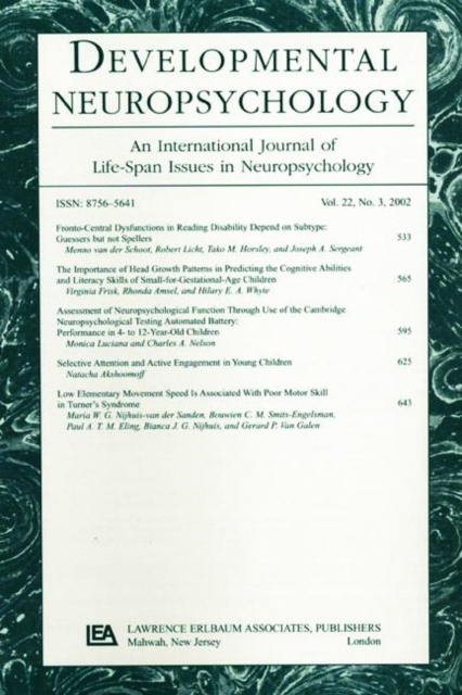 TITLE: The Neuropsychology of Developmental Dyslexia : A Special Issue of developmental Neuropsychology