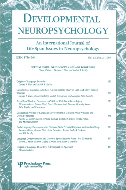 TITLE: Origins of Language Disorders : A Special Issue of developmental Neuropsychology