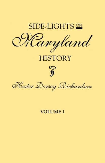 TITLE: Side-Lights on Maryland History, with Sketches of Early Maryland Families. in Two Volumes. Volume I