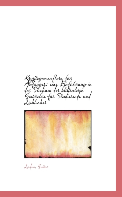 TITLE: Kryptogamenflora Fur Anfanger : Eine Einfuhrung in Das Studium Der Blutenlosen Gewachse Fur Studieren