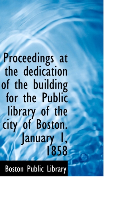 TITLE: Proceedings at the Dedication of the Building for the Public Library of the City of Boston. January