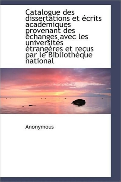 ISBN: 9781113967534TITLE: Catalogue Des Dissertations Et Crits Acad Miques Provenant Des Changes Ave…