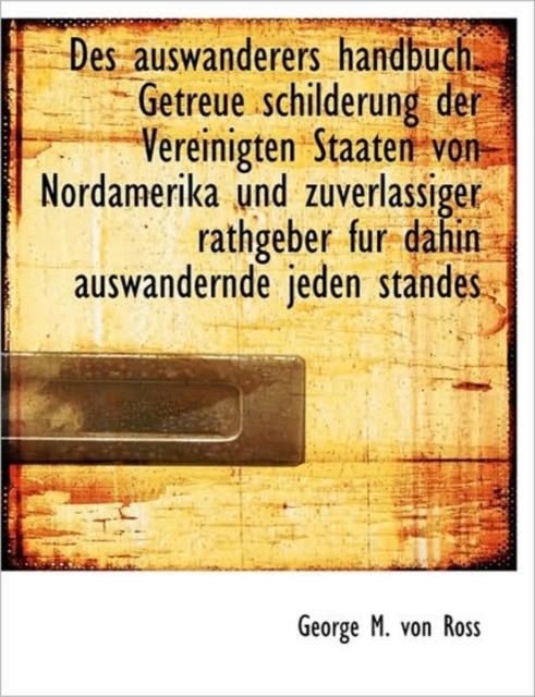 TITLE: Des Auswanderers Handbuch. Getreue Schilderung Der Vereinigten Staaten Von Nordamerika Und Zuverlass