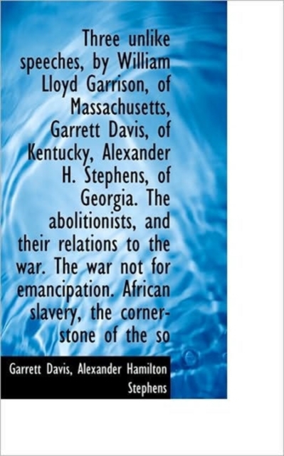 TITLE: Three Unlike Speeches, by William Lloyd Garrison, of Massachusetts, Garrett Davis, of Kentucky, Alex