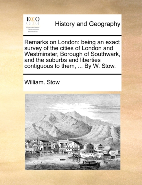 TITLE: Remarks on London : Being an Exact Survey of the Cities of London and Westminster, Borough of Southwark, and the Suburbs and Liberties Contiguous to Them, ... by W. Stow.
