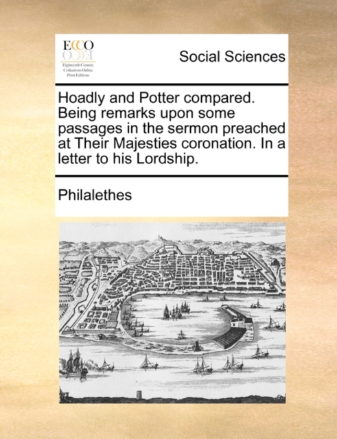TITLE: Hoadly and Potter Compared. Being Remarks Upon Some Passages in the Sermon Preached at Their Majesties Coronation. in a Letter to His Lordship.