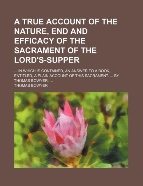 TITLE: A True Account of the Nature, End and Efficacy of the Sacrament of the Lord's-Supper; In Which Is Contained, an Answer to a Book, Entitled, a Plain Account of This Sacrament. by Thomas Bowyer,