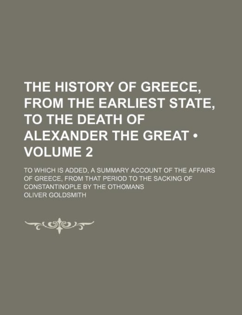 TITLE: The History of Greece, from the Earliest State, to the Death of Alexander the Great (Volume 2); To Which Is Added, a Summary Account of the Affairs of Greece, from That Period to the Sacking of Consta