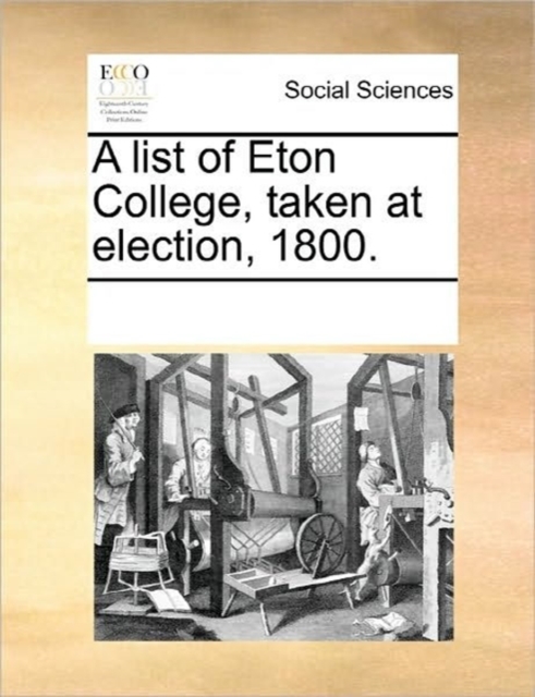 TITLE: A List of Eton College, Taken at Election, 1800.