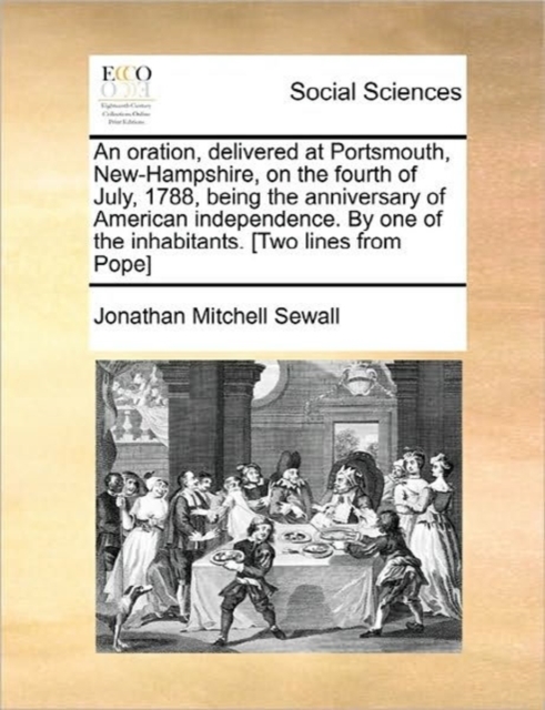 TITLE: An Oration, Delivered at Portsmouth, New-Hampshire, on the Fourth of July, 1788, Being the Anniversary of American Independence. by One of the Inhabitants. [two Lines from Pope]