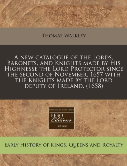 TITLE: A New Catalogue of the Lords, Baronets, and Knights Made by His Highnesse the Lord Protector Since the Second of November, 1657 with the Knights Made by the Lord Deputy of Ireland. (1658)