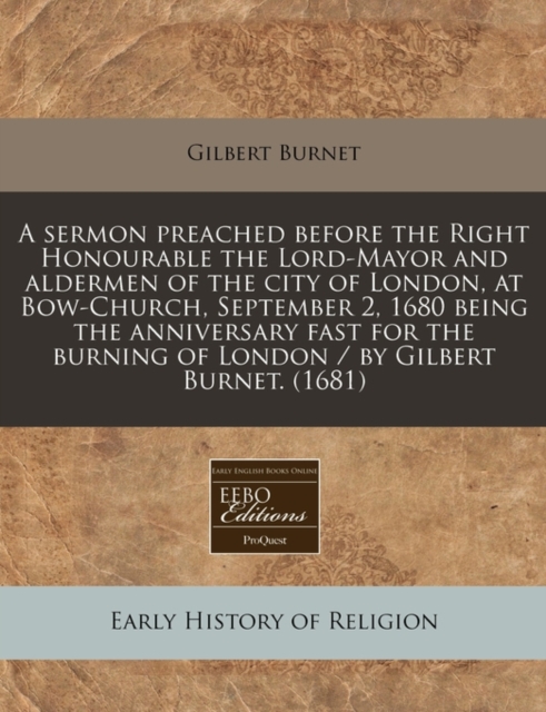 TITLE: A Sermon Preached Before the Right Honourable the Lord-Mayor and Aldermen of the City of London, at Bow-Church, September 2, 1680 Being the Anniversary Fast for the Burning of London / By Gilbert Burn