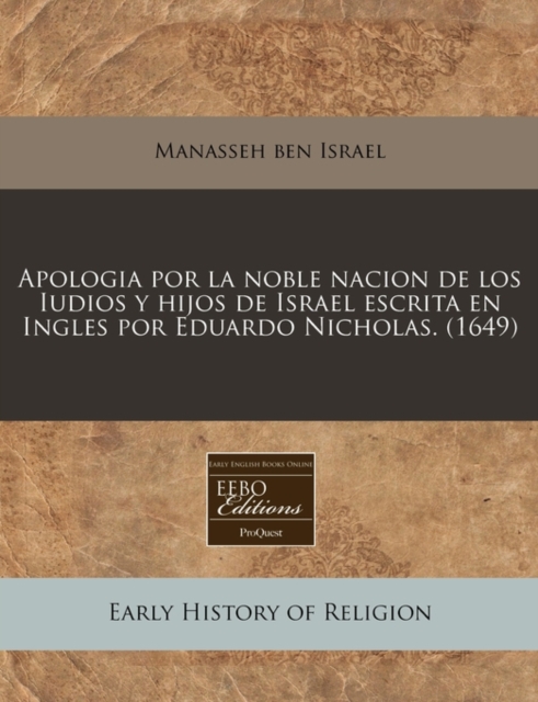 TITLE: Apologia Por La Noble Nacion de Los Iudios Y Hijos de Israel Escrita En Ingles Por Eduardo Nicholas. (1649)