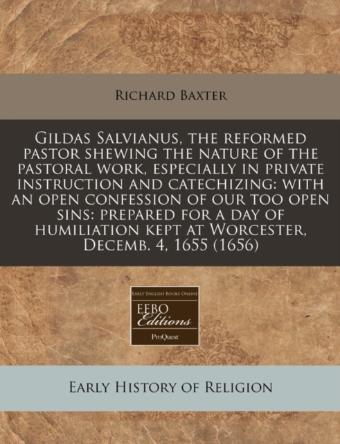 TITLE: Gildas Salvianus, the Reformed Pastor Shewing the Nature of the Pastoral Work, Especially in Private Instruction and Catechizing : With an Open Confession of Our Too Open Sins: Prepared for a Day of H