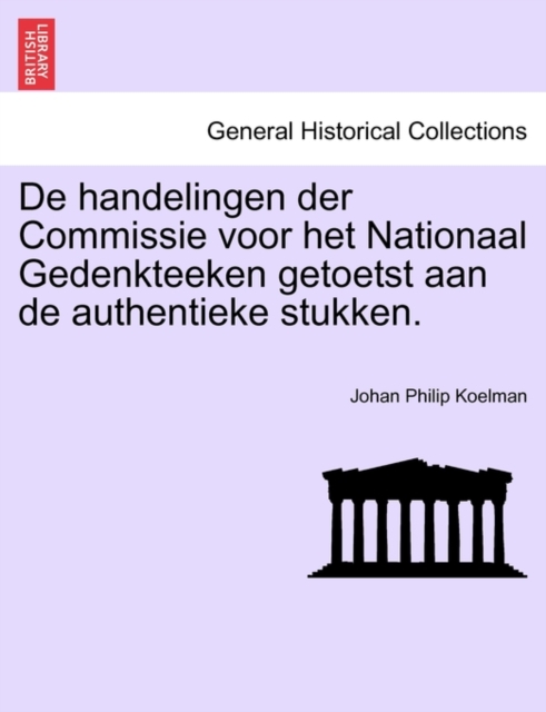 TITLE: de Handelingen Der Commissie Voor Het Nationaal Gedenkteeken Getoetst Aan de Authentieke Stukken.