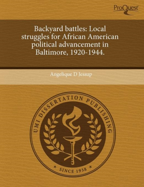 TITLE: Backyard Battles: Local Struggles for African American Political Advancement in Baltimore