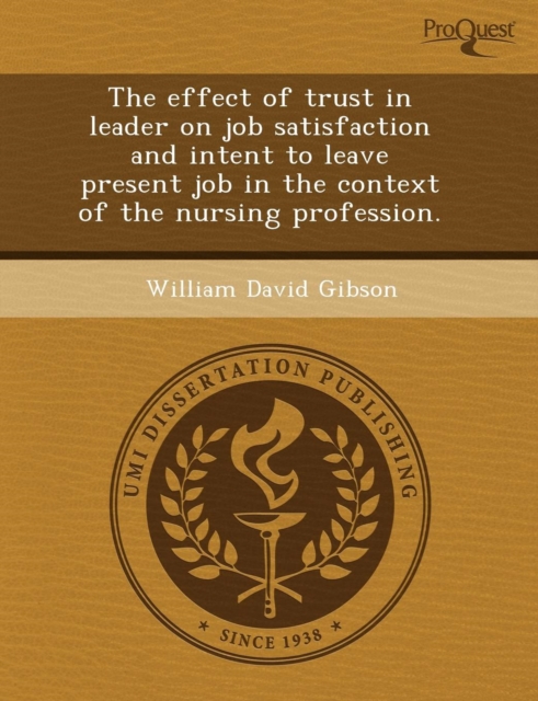 TITLE: The Effect of Trust in Leader on Job Satisfaction and Intent to Leave Present Job in the Context of the Nursing Profession