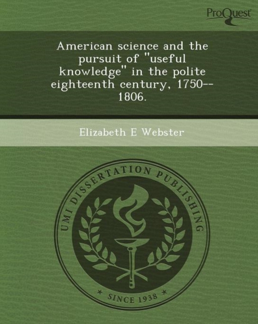 TITLE: American Science and the Pursuit of Useful Knowledge in the Polite Eighteenth Century