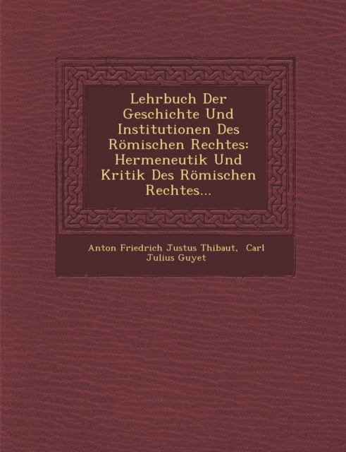 TITLE: Lehrbuch Der Geschichte Und Institutionen Des Romischen Rechtes : Hermeneutik Und Kritik Des Romischen Rechtes...