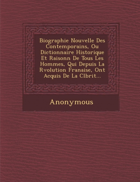 TITLE: Biographie Nouvelle Des Contemporains, Ou Dictionnaire Historique Et Raisonn de Tous Les Hommes, Qui Depuis La R Volution Fran Aise, Ont Acquis de La