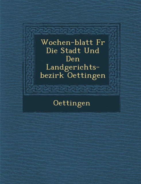 TITLE: Wochen-Blatt Fur Die Stadt Und Den Landgerichts-Bezirk Oettingen