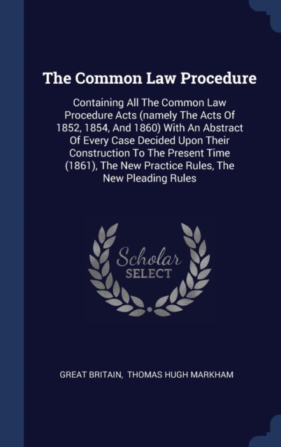 TITLE: The Common Law Procedure : Containing All The Common Law Procedure Acts (namely The Acts Of 1852, 1854, And 1860) With An Abstract Of Every Case Decided Upon Their Construction To The Present Time (18
