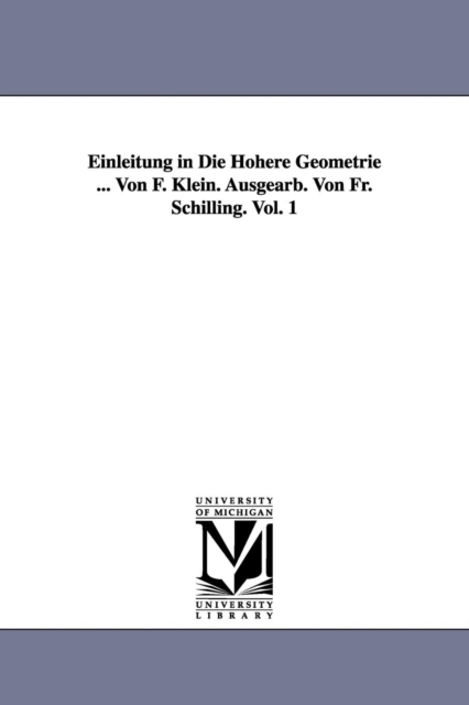 TITLE: Einleitung in Die Hoehere Geometrie ... Von F. Klein. Ausgearb. Von Fr. Schilling. Vol. 1