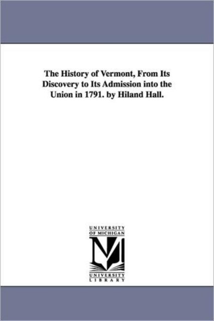 TITLE: The History of Vermont, From Its Discovery to Its Admission into the Union in 1791. by Hiland Hall.