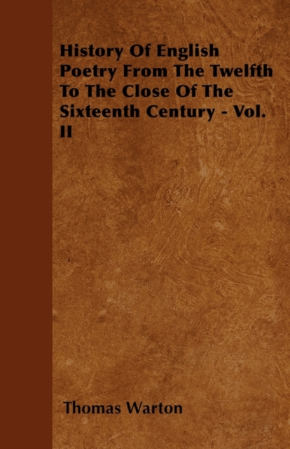 TITLE: History Of English Poetry From The Twelfth To The Close Of The Sixteenth Century - Vol. II