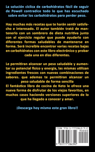 ISBN: 9781989853696TITLE: Bajo En Carbohidratos : Facilmente perder peso rapidamente y sentirse fant…