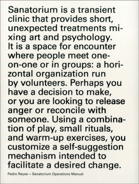 TITLE: Pedro Reyes : Sanatorium Operations Manual