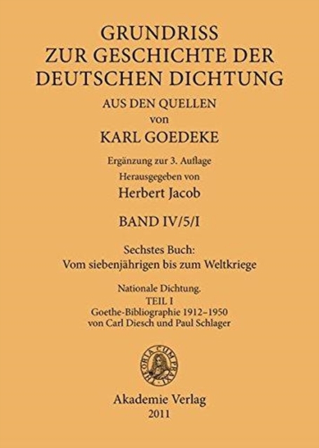 TITLE: Sechstes Buch: Vom Siebenjahrigen Bis Zum Weltkriege : Nationale Dichtung. Goethe-Bibliographie 1912-1950 Von Carl Diesch Und Paul Schlager