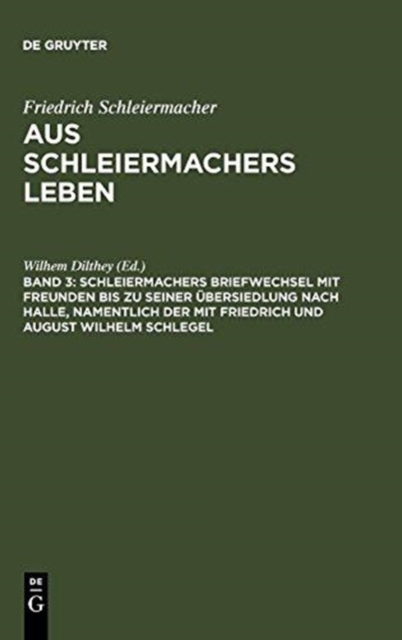 TITLE: Schleiermachers Briefwechsel Mit Freunden Bis Zu Seiner Ubersiedlung Nach Halle, Namentlich Der Mit Friedrich Und August Wilhelm Schlegel