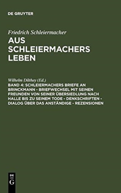 TITLE: Schleiermachers Briefe an Brinckmann - Briefwechsel Mit Seinen Freunden Von Seiner Ubersiedlung Nach Halle Bis Zu Seinem Tode - Denkschriften - Dialog Uber Das Anstandige - Rezensionen