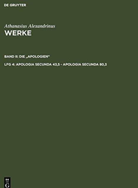 ISBN: 9783110152081TITLE: Apologia de Fuga Sua (C.19-27) - Apologia Secunda (C. 1-43)AUTHOR: Athanas…