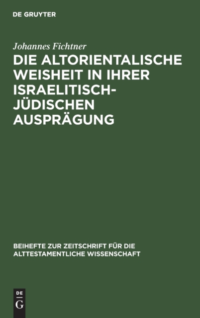 TITLE: Die Altorientalische Weisheit in Ihrer Israelitisch-Judischen Auspragung : Eine Studie Zur Nationalisierung Der Weisheit in Israel : 62