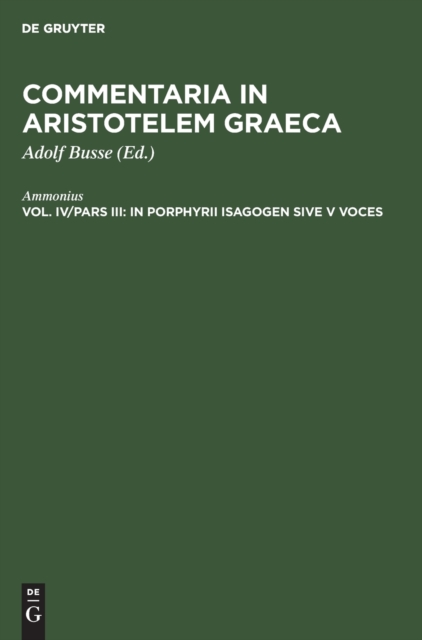 ISBN: 9783110165470TITLE: Pars I: Eliae in Porphyrii Isagogen et Aristotelis categorias commentaria.…