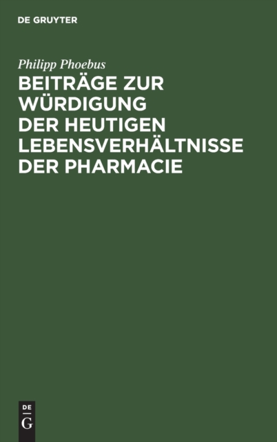 TITLE: Beitrage Zur Wurdigung Der Heutigen Lebensverhaltnisse Der Pharmacie : Fur Arzte Und Apotheker, Fur Staatsmanner Und Volksvertreter