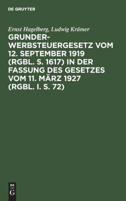 TITLE: Grunderwerbsteuergesetz Vom 12. September 1919 (Rgbl. S. 1617) in Der Fassung Des Gesetzes Vom 11. Marz 1927 (Rgbl. I. S. 72) : Nebst Einleitung, Sachregister Und Ausfuhrgsbestimmungen Und Der Einschl