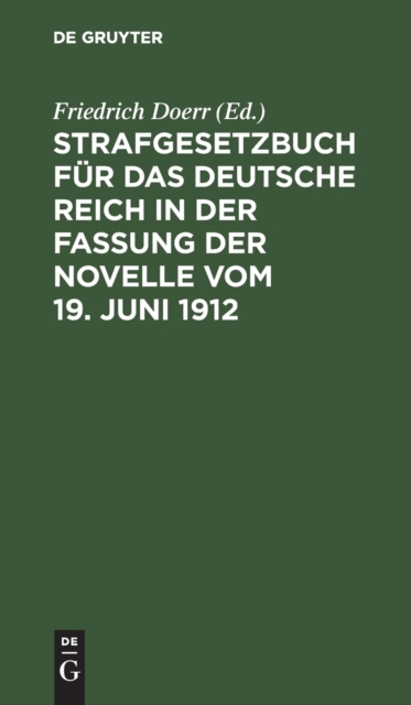 TITLE: Strafgesetzbuch Fur Das Deutsche Reich in Der Fassung Der Novelle Vom 19. Juni 1912 : Nebst Einfuhrungsgesetz Und Erganzenden Gesetzen. Textausgabe Mit Kurzen Anmerkungen Und Sachregister