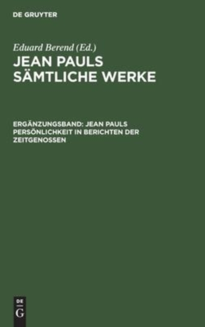 TITLE: Jean Pauls Personlichkeit in Berichten Der Zeitgenossen