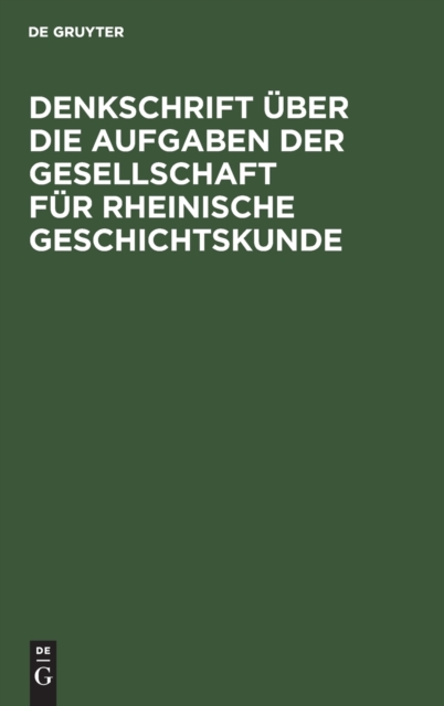 TITLE: Denkschrift Uber Die Aufgaben Der Gesellschaft Fur Rheinische Geschichtskunde